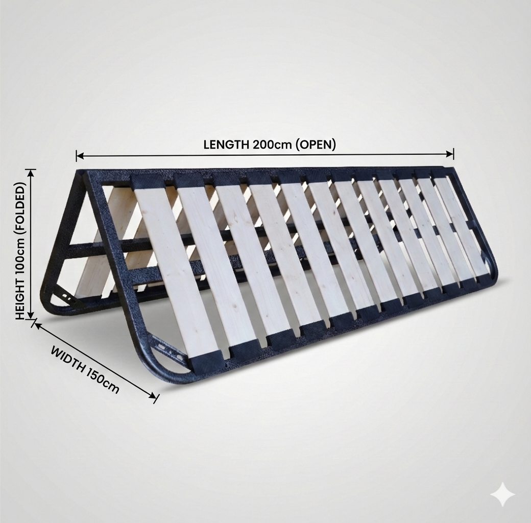 The folding slat frame is designed for maximum convenience in storage and shipping. It folds in half for compact storage, reducing shipping costs by up to 40%. Despite its portable design, it maintains excellent stability and comfort when assembled. Perfect for e-commerce brands, guest rooms, and space-conscious living.